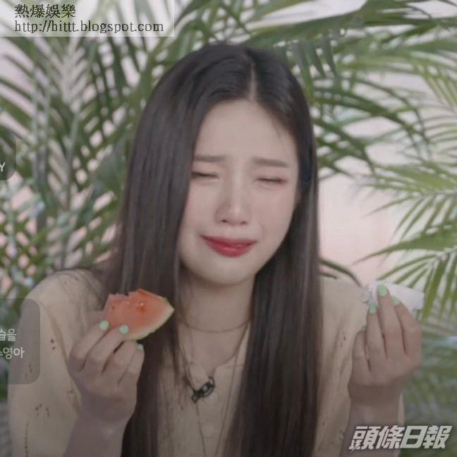 最後粉絲留言叫Joy吃西瓜,希望她心情會變好,結果Joy一邊吃西瓜一邊哽咽,可愛反應令鏡頭外的製作組也忍不住笑意。她也承諾回家後一定會把粉絲留言全部看完。