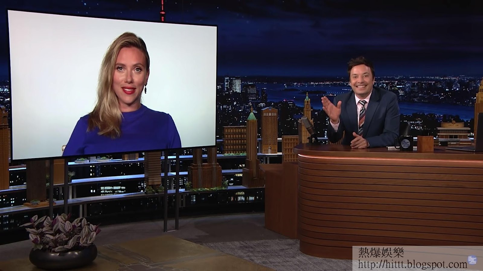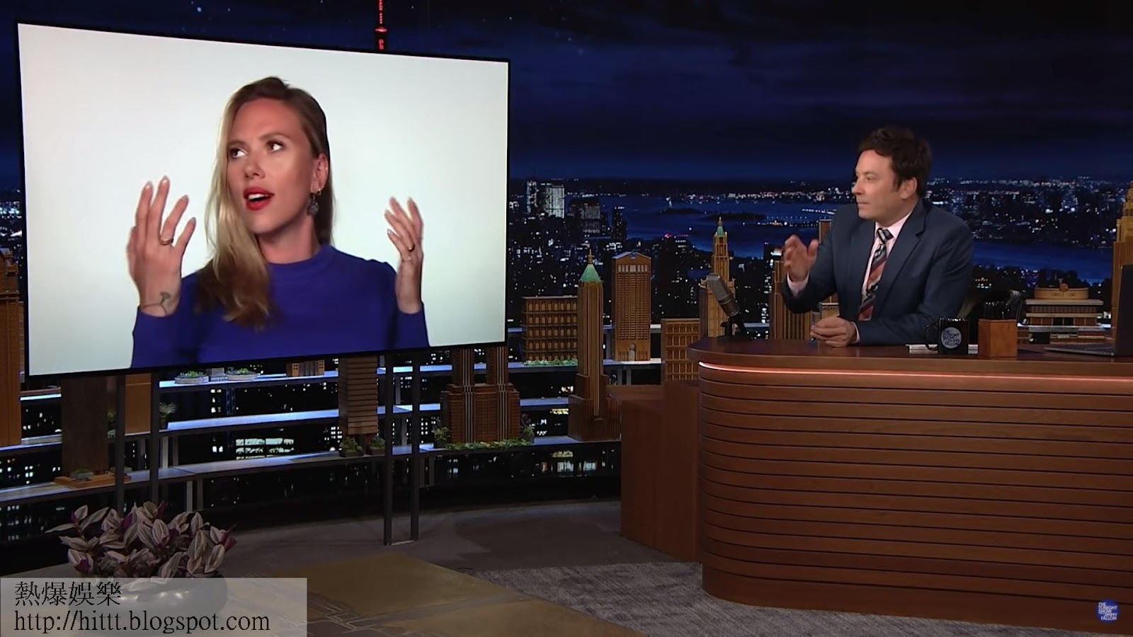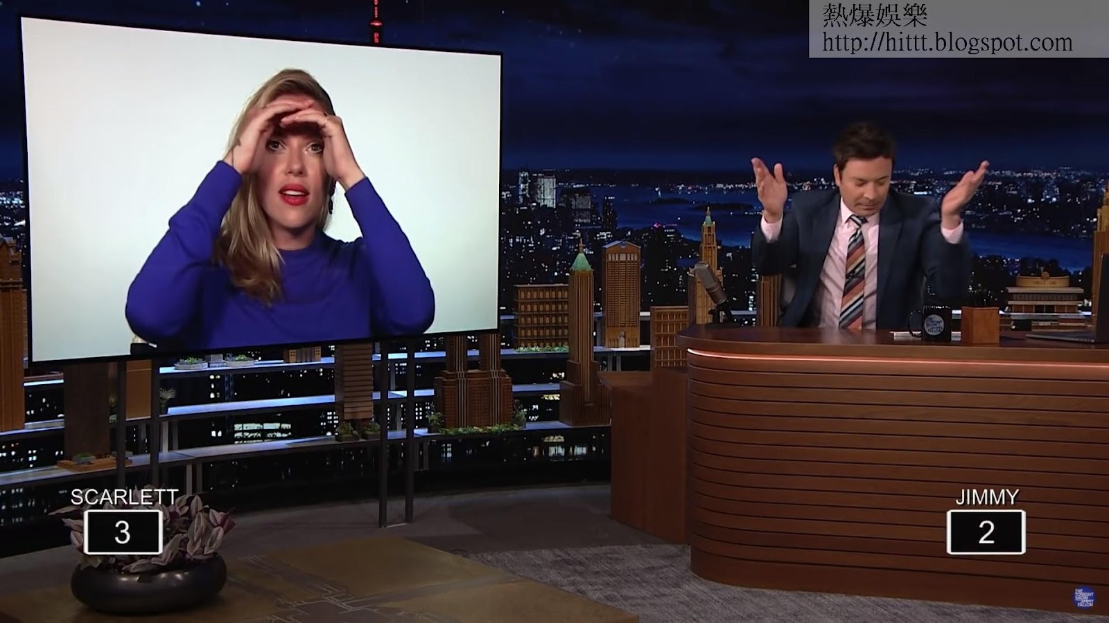 施嘉莉祖安遜大戰Jimmy Fallon。(影片擷圖)