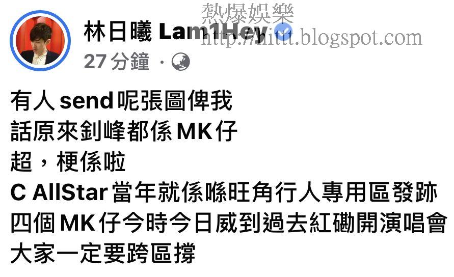 而林日曦亦在網上直言:原來釗峰都係「MK仔」,到底要有咩行為,先可以成為一個MK?