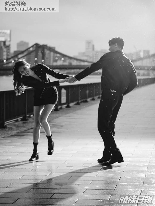 黑白照中,林志玲著住Deep V綁繩上衣加短裙大Show長腿,非常性感,而AKIRA就以皮褸搭配葉紋襯衫,二人如跳舞般,背靠背又攬哂合照。而志玲另於微博多放一張扮跳舞嘅相,要睇哂兩邊先會睇哂10張相。網民都送上祝福,讚兩人真係非常登對,更表示時間過得太快,祝二人一定要繼續咁恩愛添!