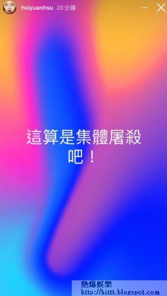 不過,大S在婚變風波後,一直保持緘默沒有再發言,沉默7日後,她在很少更新的個人IG限時動態首度發聲,語出驚人寫道「我們被集體屠殺了!蔡!屠殺我們」。到今日清晨近6點,她又在IG限時動態發表一篇黑底白字的留言:「那個……微博跟IG都沒問題……本人手殘不會用…。但狠話是保留的奧!」似乎仍有極多不滿。至於「蔡」代表甚麼?由於大S沒有再解釋,因此引發大批網民猜測。