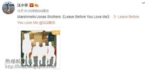 而今日凌晨,他又更新社交網,甫出DJ Marshmello與Jonas Brothers的合作歌曲《Leave Before You Love Me》(在你愛我之前離開),似乎兩人仍未和好,心情依然低落。有網民解讀歌詞並說:「我不想就這樣離開你表達了小菲對大S的想念?」