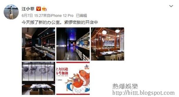 台灣女星徐熙媛(大S)日前公開嗌離婚一事驚動中港台三地,被離婚的汪小菲在之後在社交網發文認錯,又大讚大S是好老婆,不過似乎未能打動大S,但汪小菲就懶理在社交網上載照片,留言:「搬遷了今天的新辦公室,緊鑼密鼓的開店中。」又為高考生打氣,不少網民都問:「哄好了沒呀?」、「老婆生氣了,還在忙着事業,來看看我們小菲!」