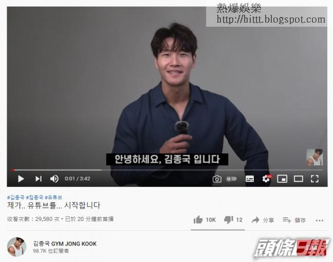 金鐘國所屬公司Turbo JK今日宣布:「金鐘國將在今日韓國時間6時(香港時間5時),開設個人YouTube頻道『GYM JONG KOOK』。 」頻道名稱將「GYM」及「鐘國」結合,金鐘國透露原來有特別意思:「使用健身室的英文名稱,希望表達運動的親切感。不是職業運動員,而是熱愛運動的人,以及對運動不太感興趣,但好奇運動愛好者生活的人,帶來不同的內容及共鳴。在這個YouTube頻道,我不是歌手或綜藝主持金鐘國,而是熱愛運動,但又不是職業運動員的代表。」