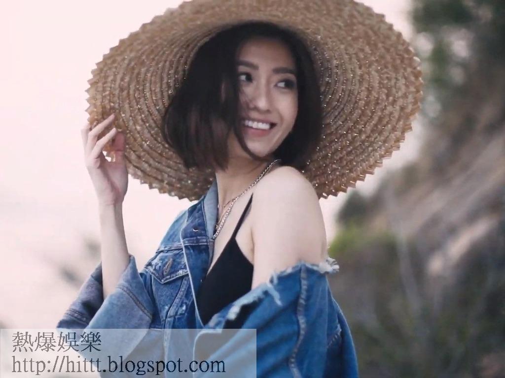 另一個造型,陳自瑤穿黑Bra及肉色打底褲,然後用一個大的太陽帽遮身,露出鎖骨及雙腿,驟眼似令人有全裸的感覺,十分性感。