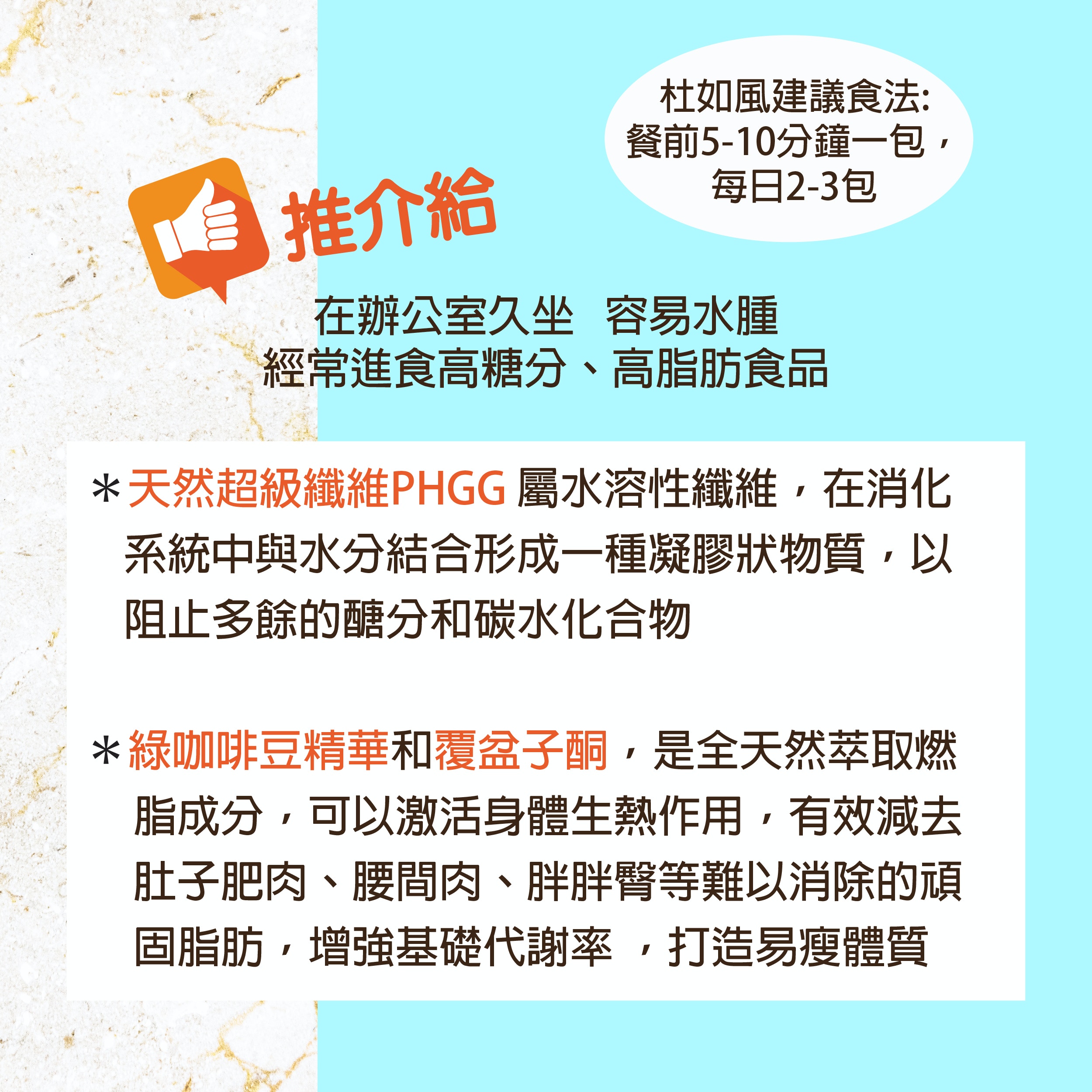 46歲的杜如風近日於真人秀節目中盡顯其「Hea爆」一面,除了專業級「扮工」成為網民熱話外,連帶身形亦備受關注。她近年時肥時瘦,連自己亦忍不住自嘲「肥風」。她分享多年來曾嘗試不同的減肥方法,包括168斷食法、雜菜湯減肥餐,7天斷食法等,不過通通都要捱餓,難以堅持。而她近期則試行大熱的生酮飲食,不過踏入「中女」之齡,新陳代謝減慢令減肥難上加難,加上她一貫的懶人作風,減肥期間亦沒有嚴格戒掉澱粉質。然而,她的減肥成績令人驚喜,於零運動、零戒口的情況下,一個月內成功減去5磅,秘訣原來靠Superfood Lab新出的SuperHot Fat Burn™抗醣燃脂素。