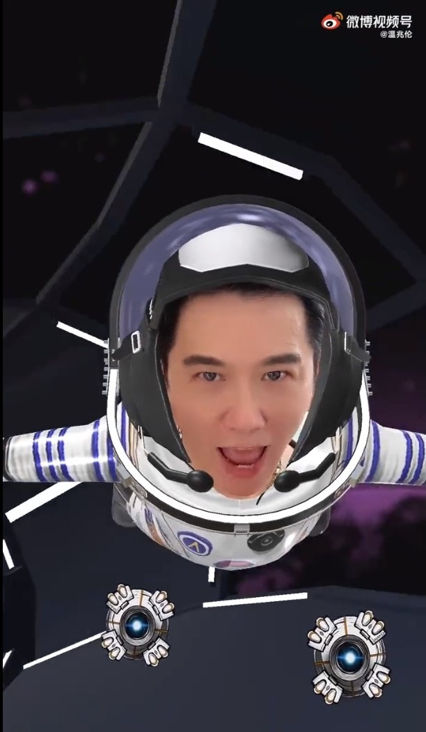 溫兆倫乘著內地太空人熱潮,也拍攝太空短片。(溫兆倫微博)