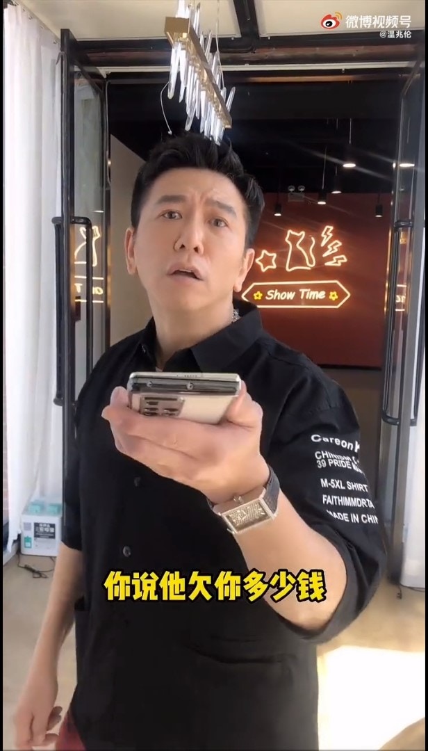 溫兆倫自拍幫朋友還債的視頻。(溫兆倫微博)