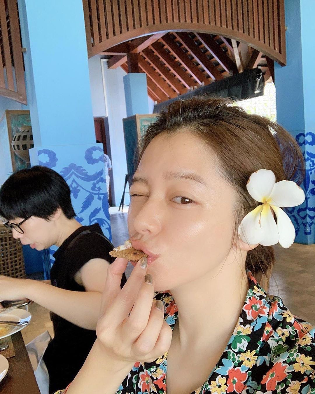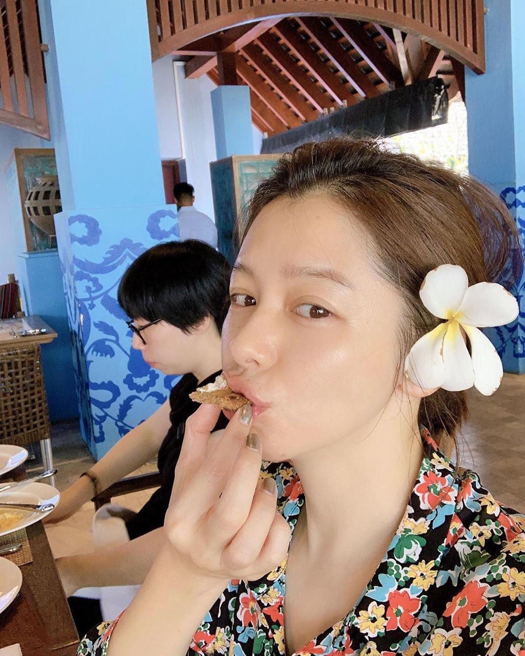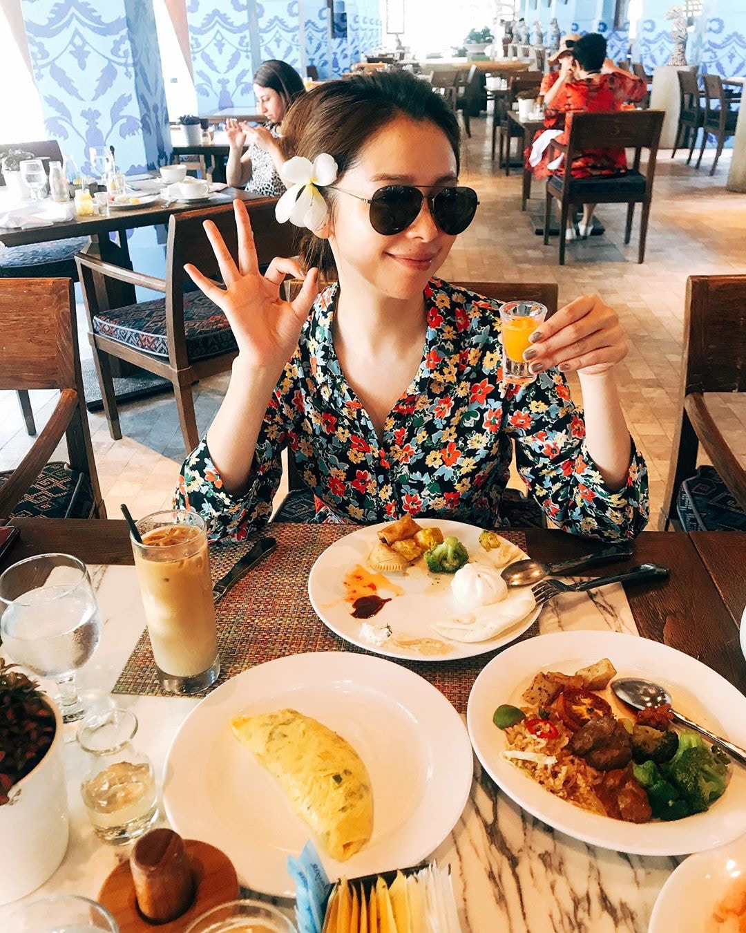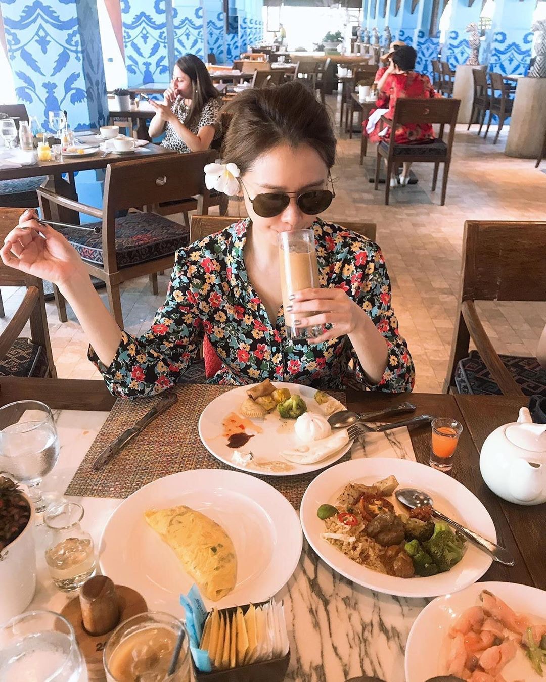 Vivian因為無化妝而戴住太陽眼鏡食早餐。(徐若瑄ig)