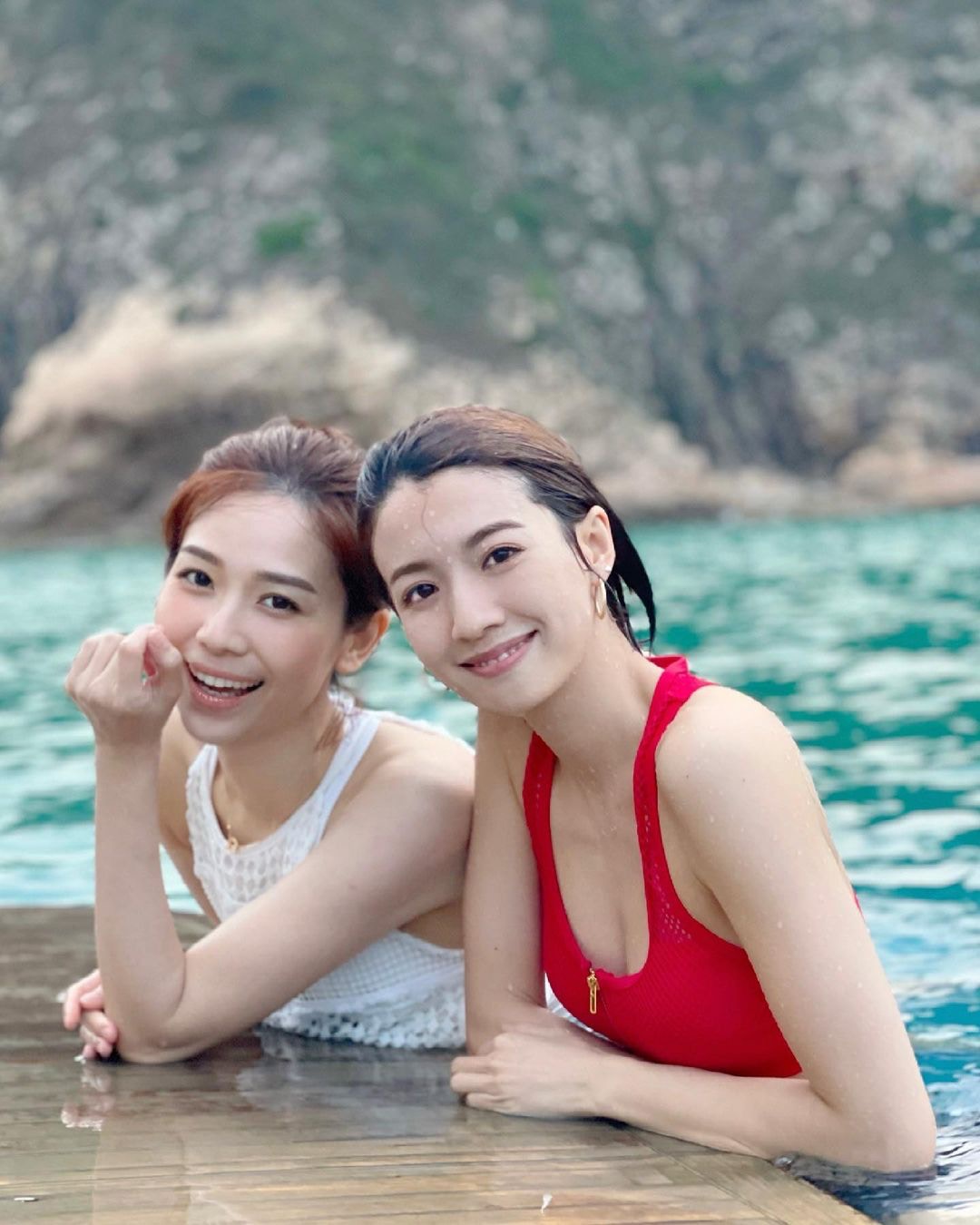 蔡思貝紅色泳衣搶晒鏡,同楊秀惠一家慶祝母親節。(IG:sisleychoi)