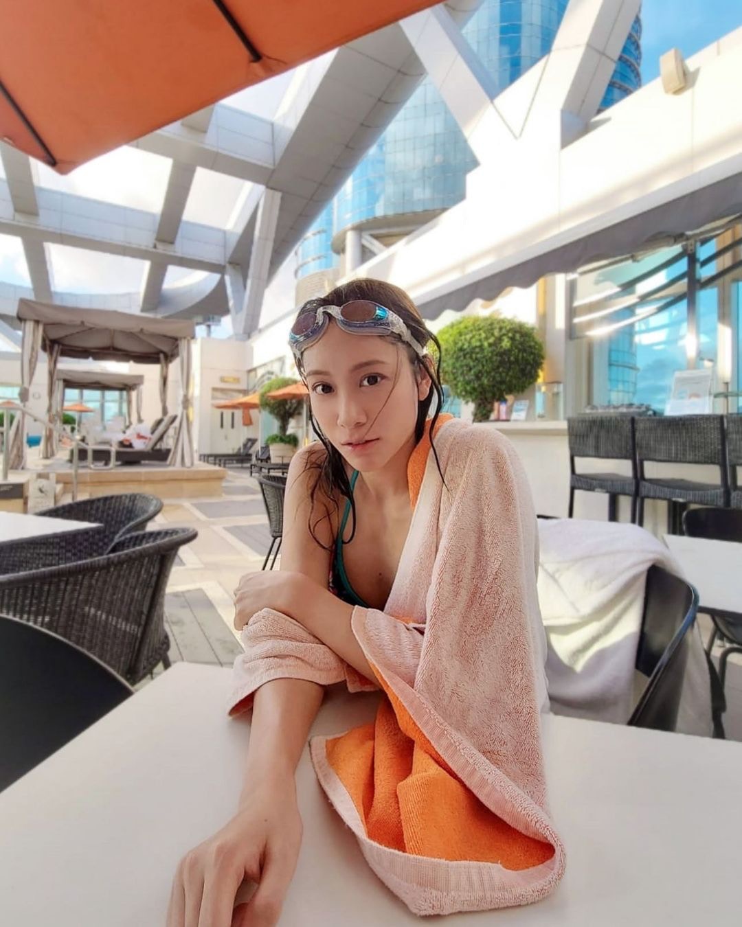 Lilian Kan簡幗儀着一件頭泳衣暗藏小機心。(IG@liliankan)