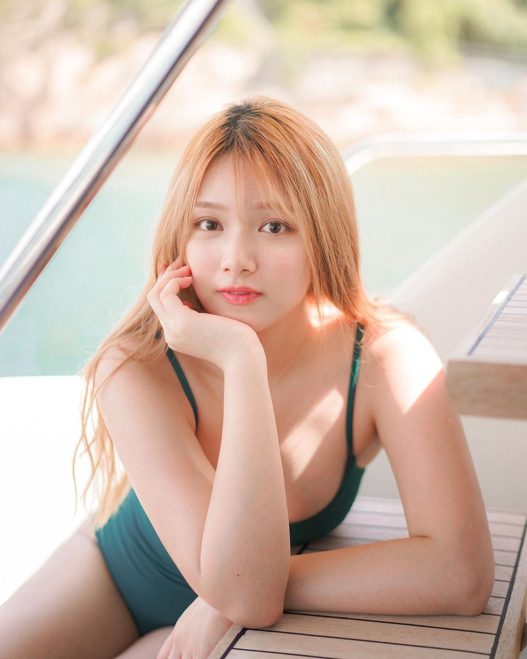 陳偉琪穿上連身低胸泳衣大曬古銅色肌膚。(IG/ @vthechan)