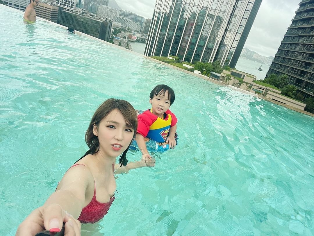 孫慧雪無邊際泳池瘋狂打卡 紅色泳衣勁搶眼:同小情人嘅二人世界