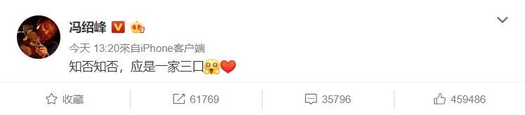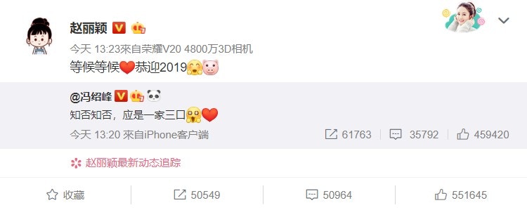 趙麗穎馮紹峰在元旦當日宣布懷孕。(微博截圖)