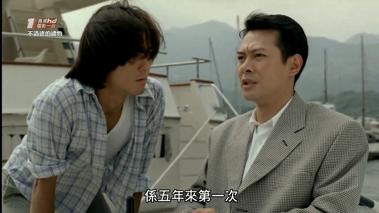 江華在《不道德的禮物》與鄭伊健飾演兄弟,同時愛上邱淑貞。(電影截圖)