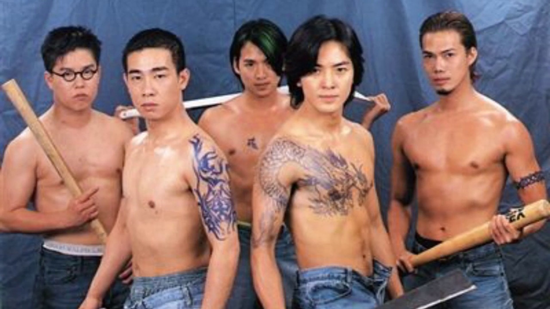 洪興五子鄭伊健、陳小春、謝天華、朱永棠以及林曉峰。(電影劇照)