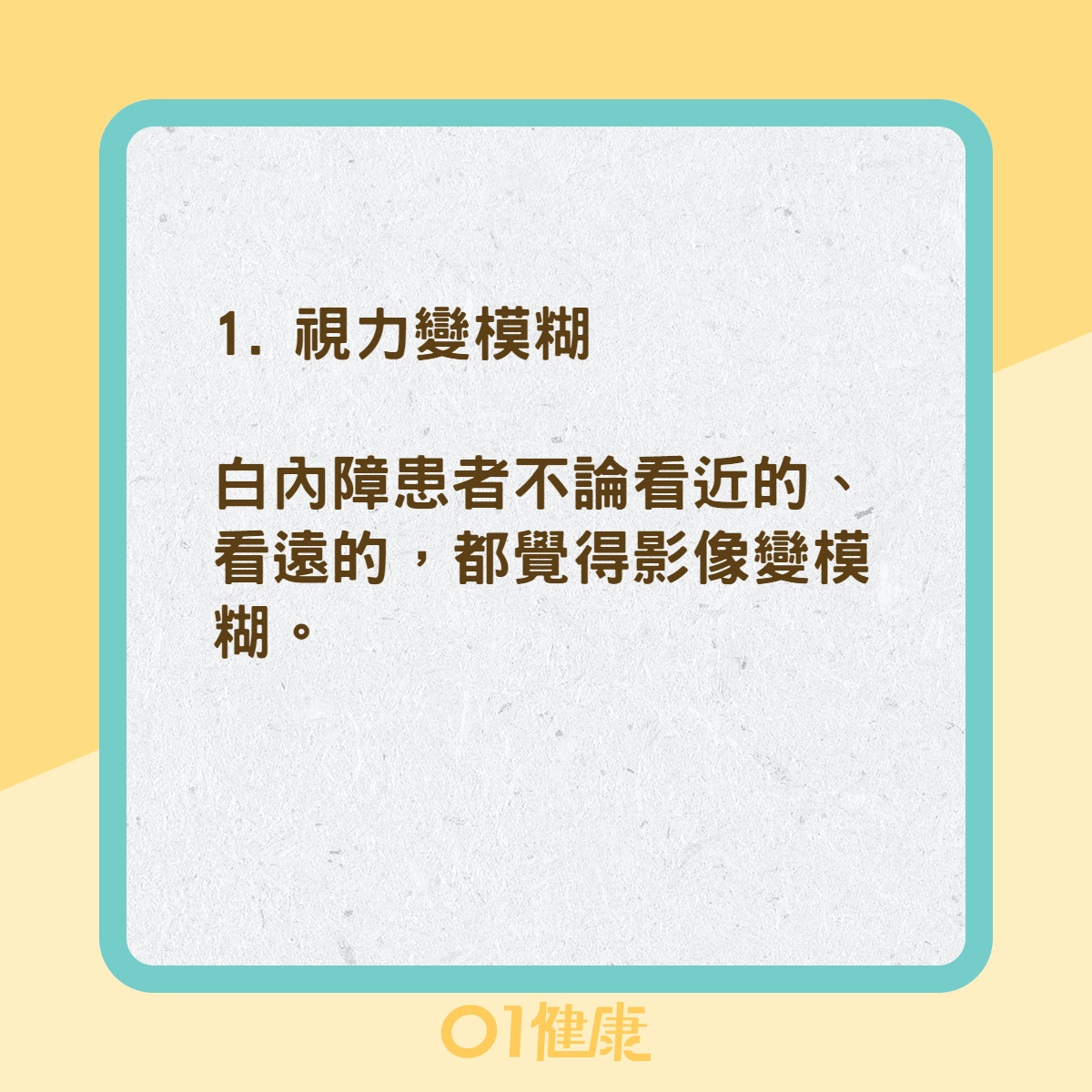 ▼白內障除了遠近都看不清楚,視力模糊外,還會很怕光,夜間的街燈光線也會覺得很強,其餘還有什麼症狀?(按圖👇👇👇)