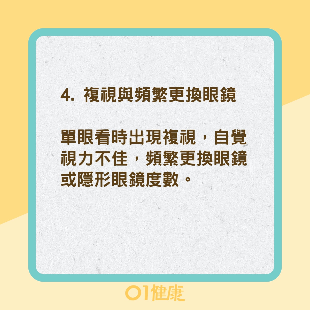 單眼看東西時會出現複視,然後誤會自己視力不佳而頻繁更換眼鏡。