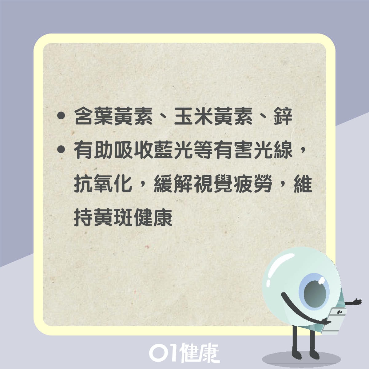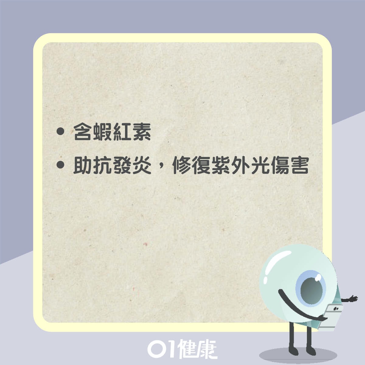 要預防眼疾,也可從飲食習慣著手。眼睛最需要攝取的營養素為維他命A、維他命C、維他命E、奧米加(Omega3)脂肪酸、類胡蘿蔔素、礦物質、脂肪酸和抗氧化劑。除了一般綠葉蔬果,三文魚、蝦、海藻等都是很好的護眼食材。