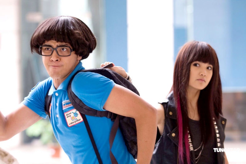 2008年,楊丞琳和潘瑋柏主演偶像劇《不良笑花》,「蔣小花」的爆炸頭亦因此成為楊丞琳的標誌。(《不良笑花》劇照)