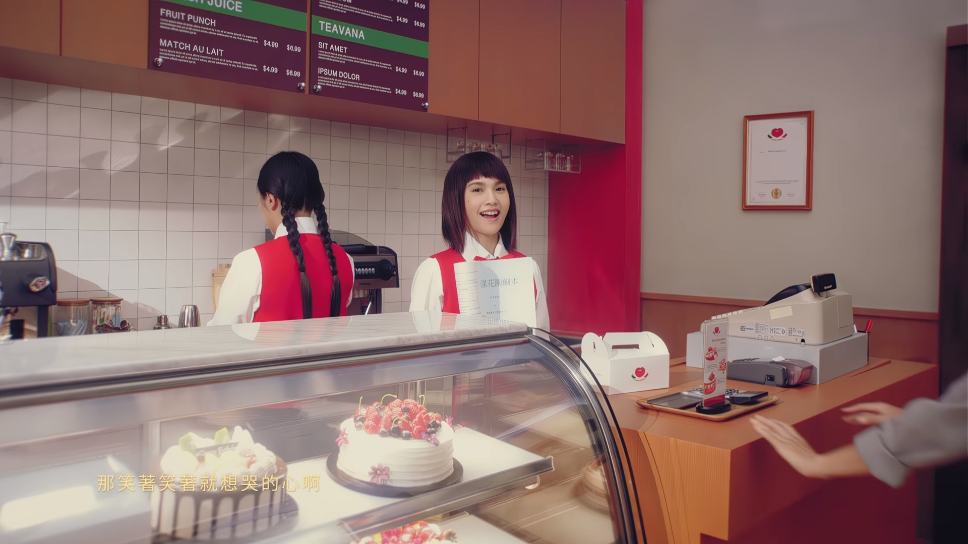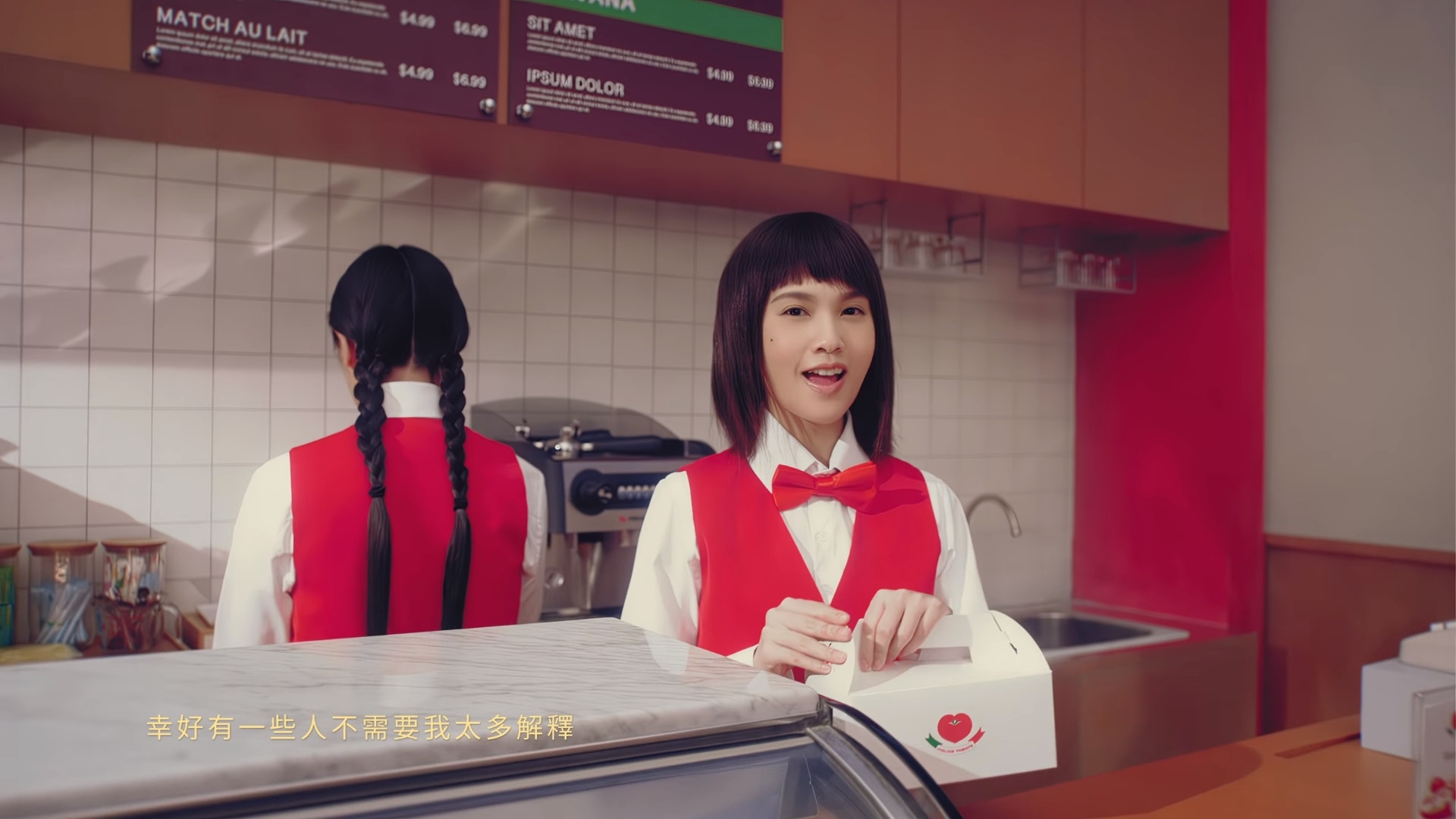 楊丞琳換上cafe工作服,再戴上假髮再次扮演小優,後面還有紮孖辮的杉菜。(YouTube:Rainie Yang's Official Channel楊丞琳官方專屬頻道)
