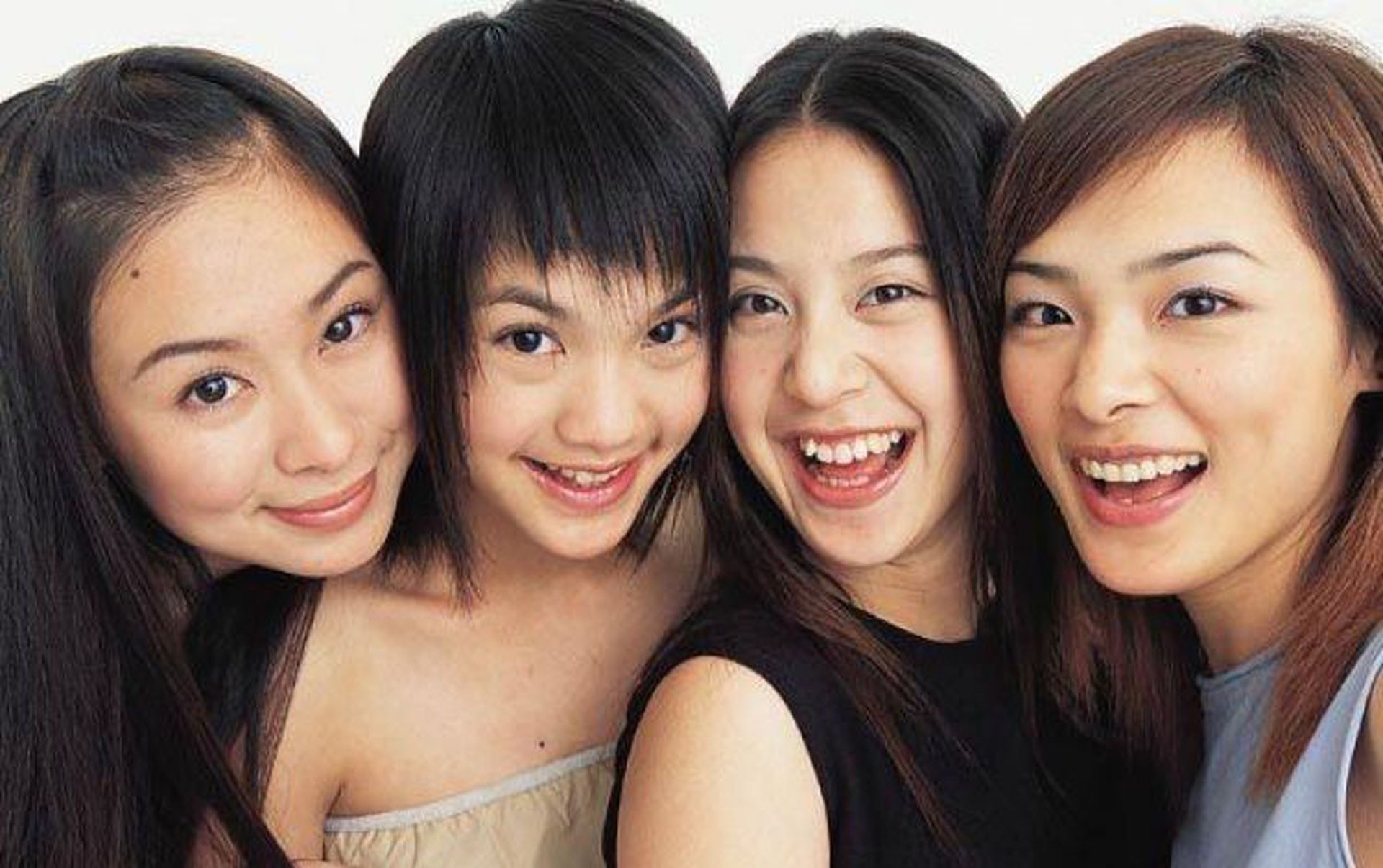 楊丞琳(左二)於16歲時連同黃小柔(右二)、張棋惠(左一)和冷嘉琳(右一)組成女團4in Love出道,代表作為《一千零一個願望》和《命中注定》。(網上圖片)
