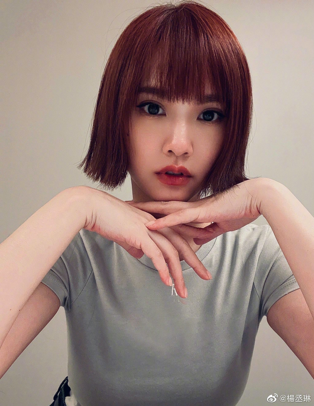 新髮型讓她皮膚看起來更白皙。(楊丞琳微博圖片)