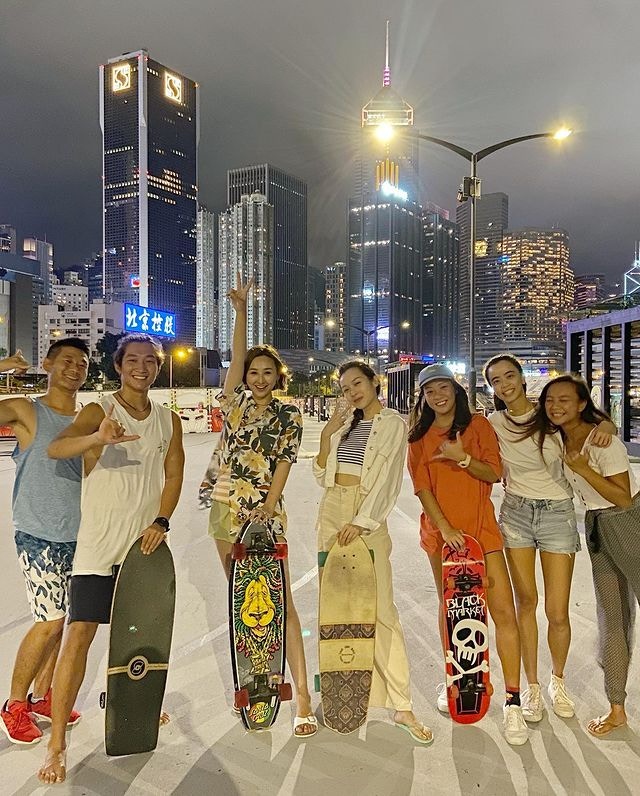 最近二人更先坐定定畫水彩畫,又一起玩戶外踩滑板,十足糖痴豆。(IG/@sammkoling)