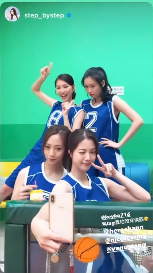 周梓盈、沈可欣、何綺雲、呂慧儀、岑杏賢、梁茵等曾在處境劇《愛‧回家之開心速遞》中化身排球女將。(IG@konniecrab)