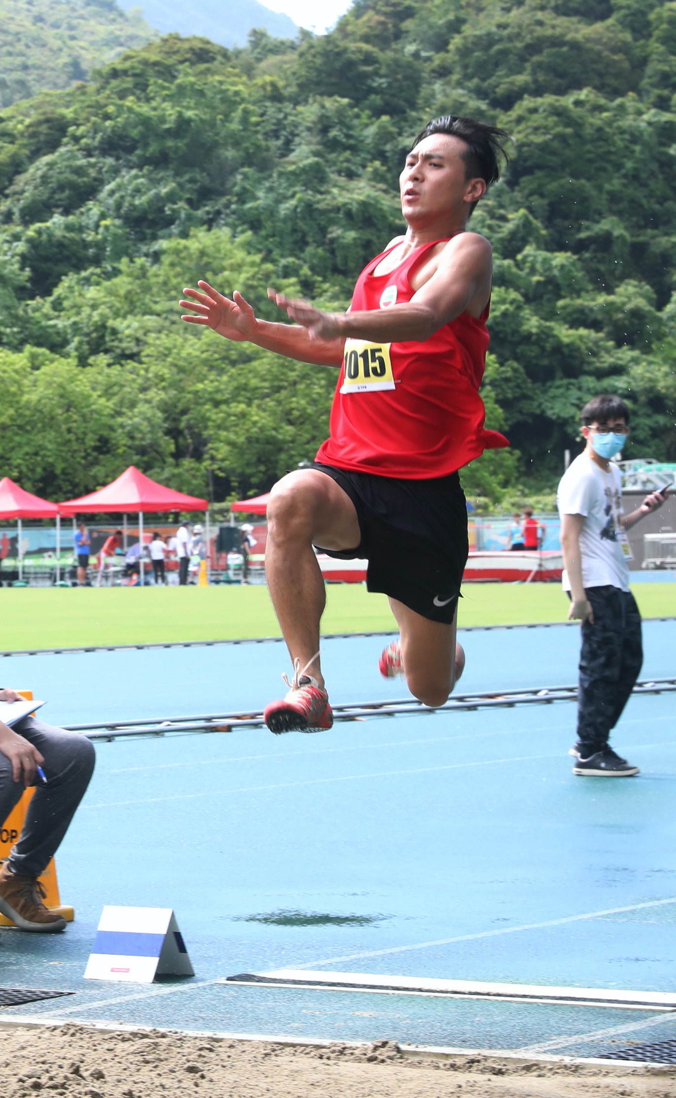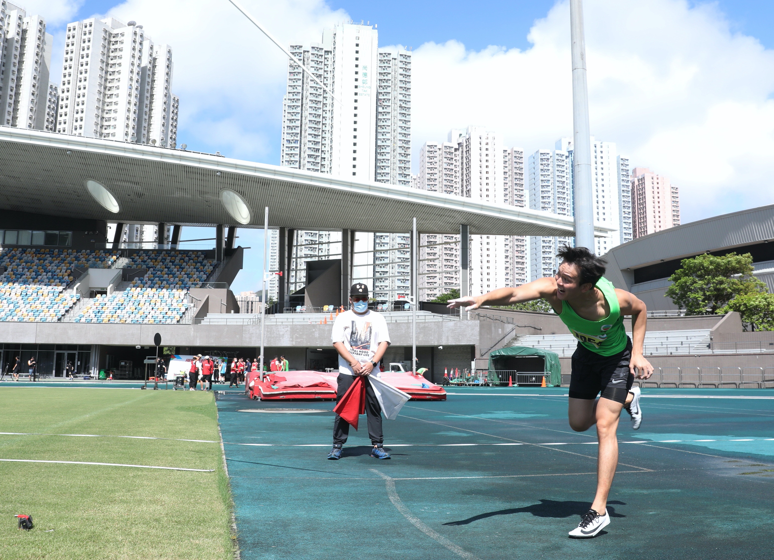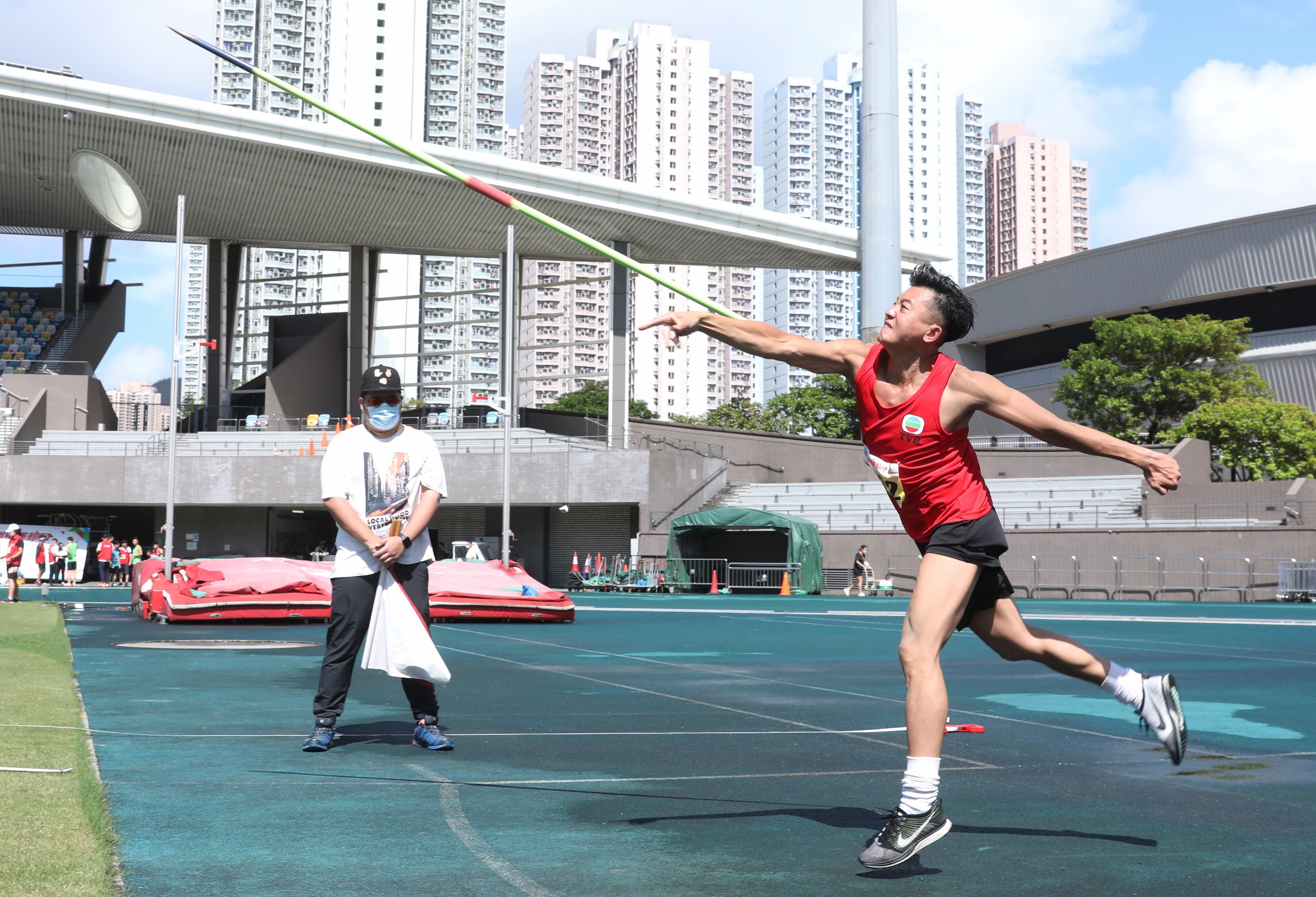 而藍隊的許家傑亦曾經是鉛球校隊代表,推鉛球成績令人驚喜,他在接受訪問時表示十分滿意自己的表現,重拾對推鉛球感覺,既陌生又興奮:「讀書時的表現會較大力,但今日贏在技巧,若比賽有更多試擲機會,表現會更好,相信已為團隊出一分力。」