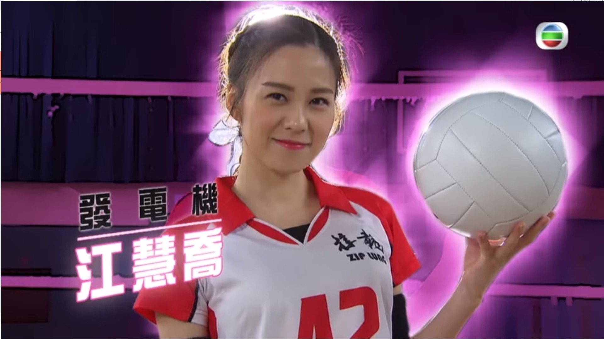 傅嘉莉排球造型。(YouTube影片截圖)