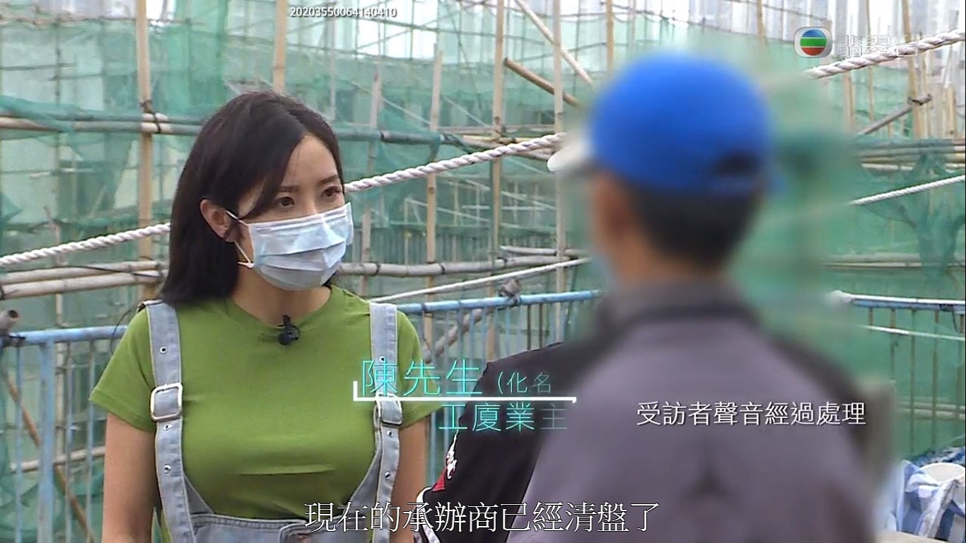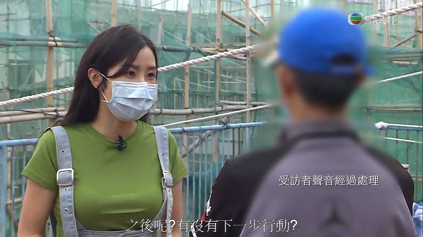 利穎怡曾踢爆荃灣一座工業大維修工程爛尾的背後原因,利穎怡電話訪問該工廈業主立案法團主席張先生時亦非常犀利,不斷用問題逼到對方入死角,相當專業。(節目截圖)