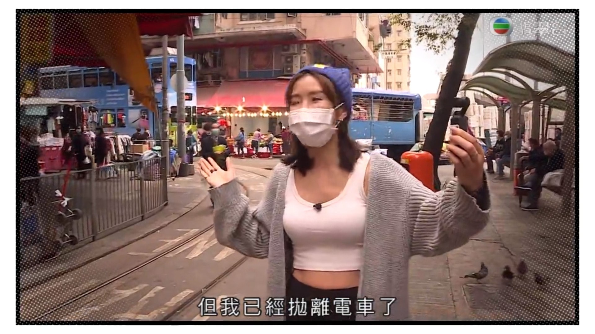 利穎怡在主持《東張西望》因為穿上貼身背心採訪北角春秧街街市阻街問題而成為網民的焦點,更引起一輪熱烈討論,令「小背心」再次成為關鍵詞。(節目截圖)