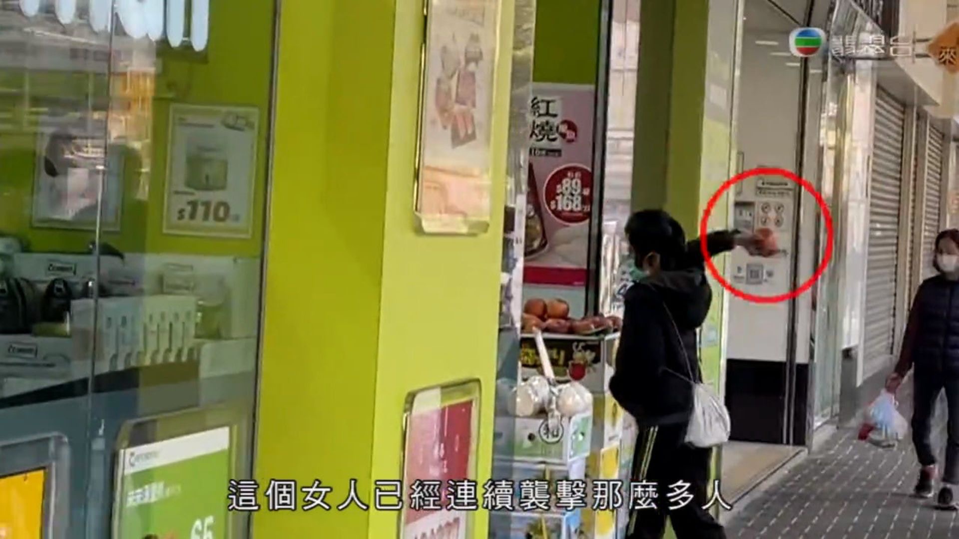 牛頭角神秘女子除突然拍打路人、扯走對方口罩之外,又會走到街市搶嘢、用拖鞋襲擊小朋友。(影片截圖)