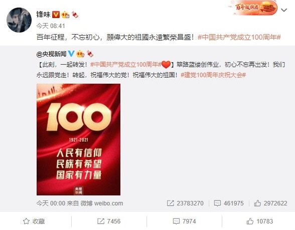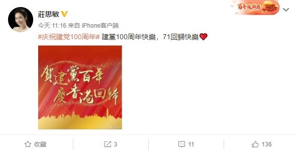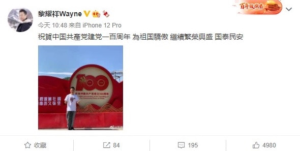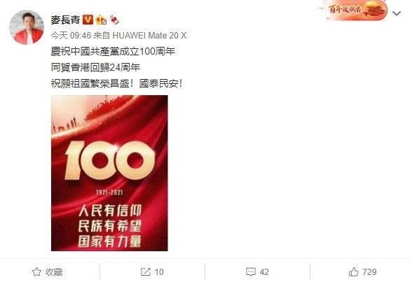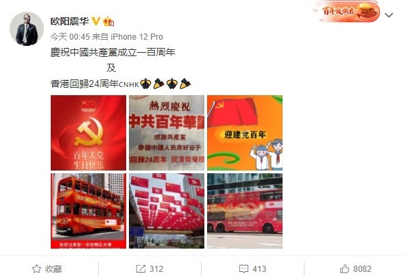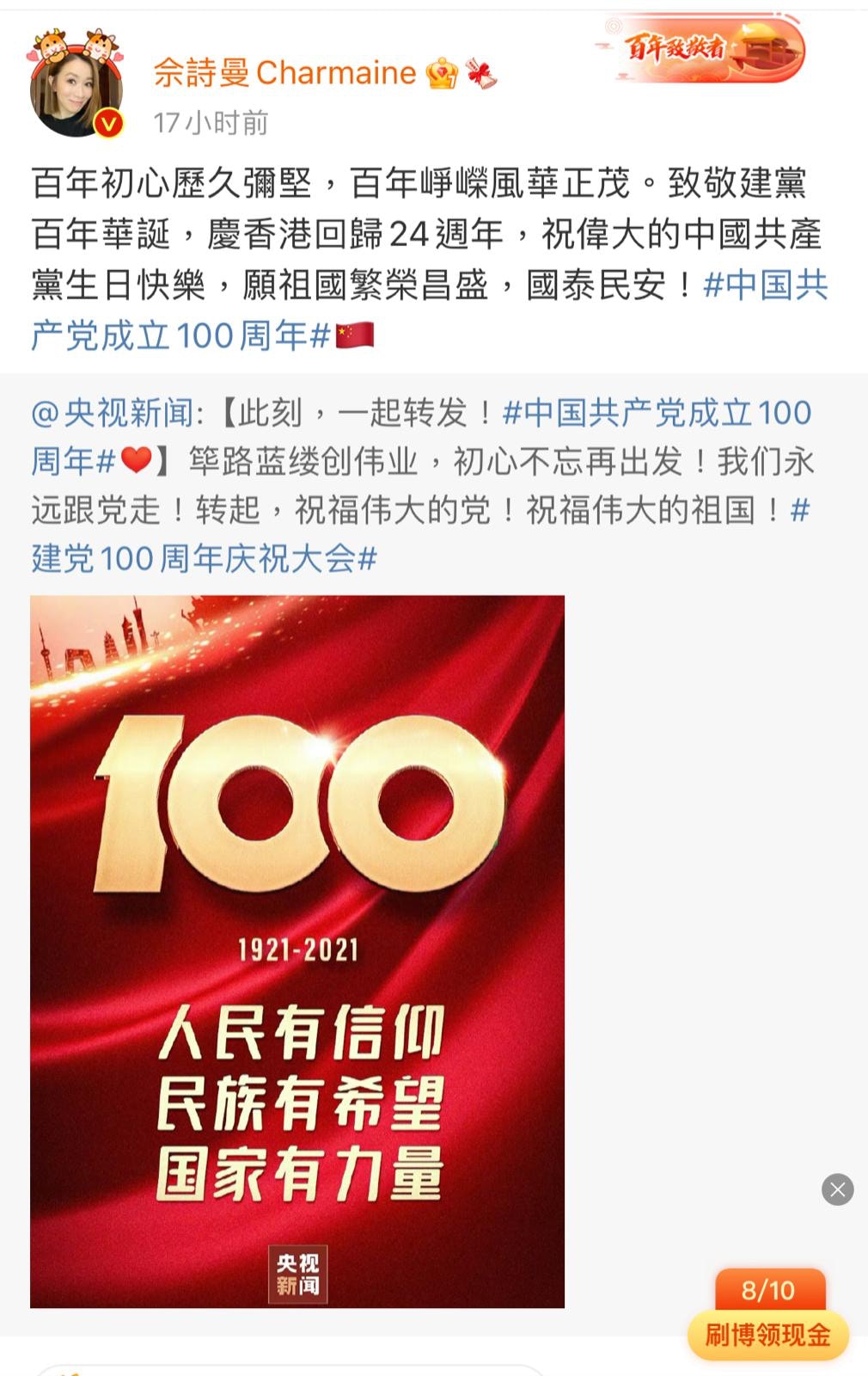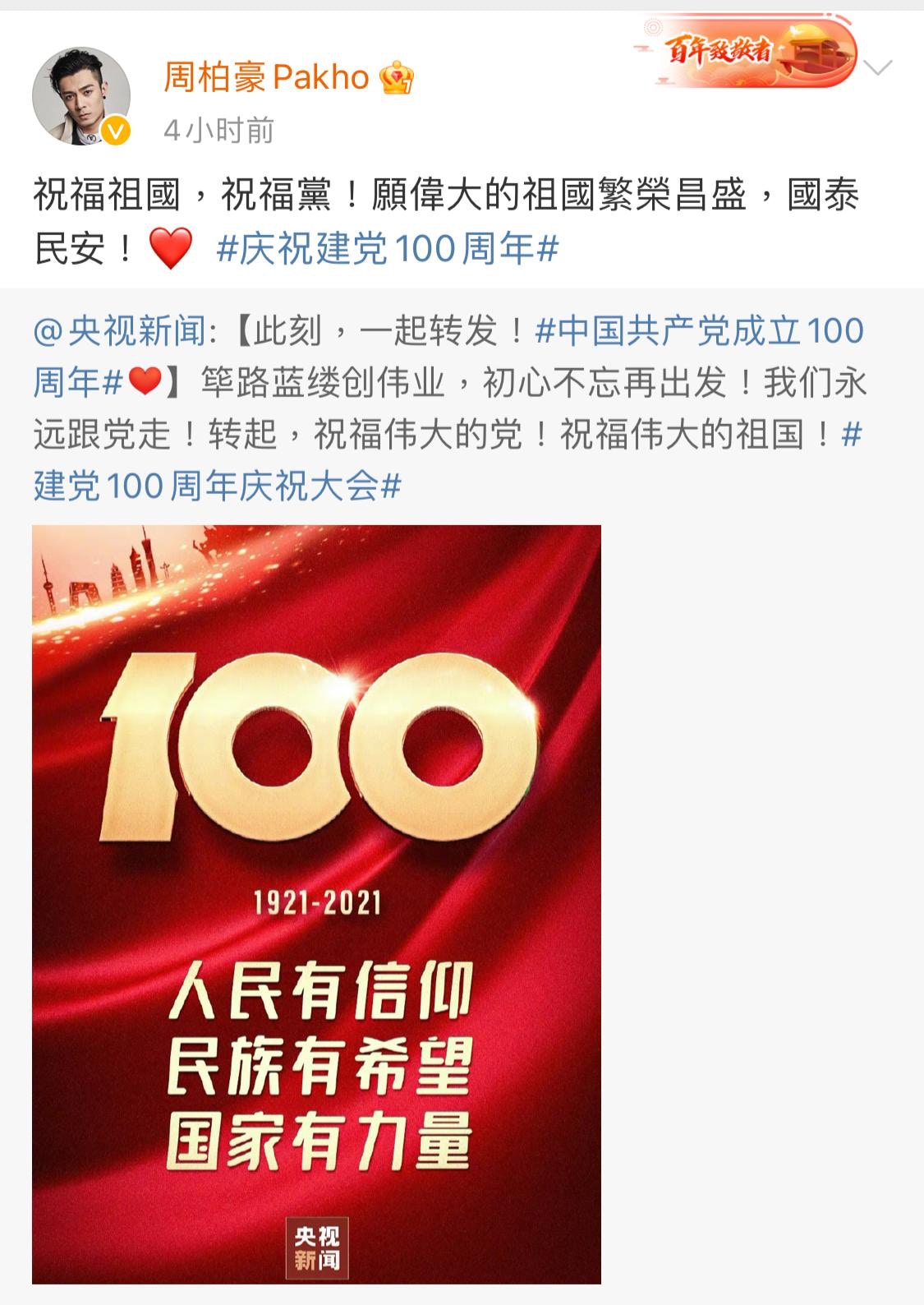 相關圖輯:中共建黨百年|多名香港藝人獻祝福 周柏豪愛國表白令人動容(點圖放大瀏覽👇👇👇)