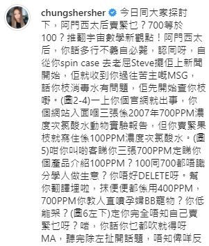 鍾舒漫第四度反擊陳潔玲全文。(Instagram/@chungshersher)