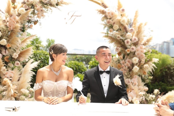 洪永城(Tony)與梁諾妍(Inez)在7月11日結婚。(葉志明攝)