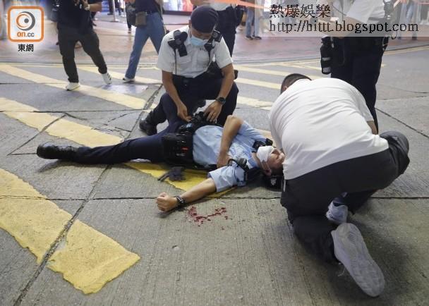 消息指,受傷警員30歲、隸屬機動部隊,他左肩胛骨中刀,清醒送往瑪麗醫院;50歲姓梁疑犯當場被制服。現場片段顯示,當時一名男子持刀從後刺向一名警員左肩位置,身邊同袍一手按着槍袋,一手指向施襲者。