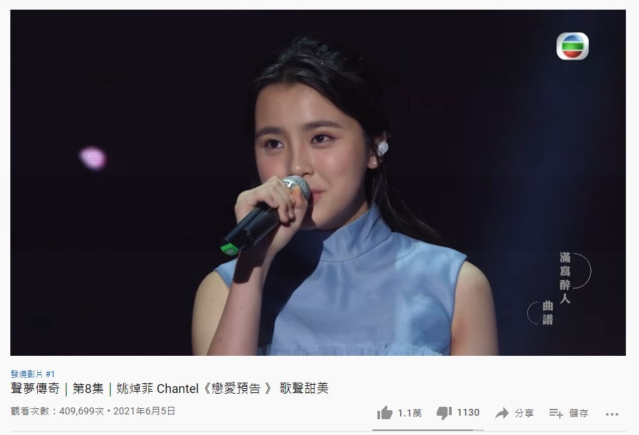 Chantel翻唱林珊珊《戀愛預告》,片段登上Youtube發燒影片第一名。(YouTube截圖)