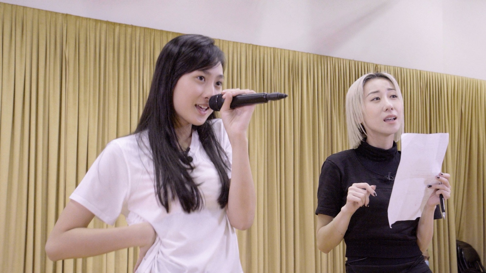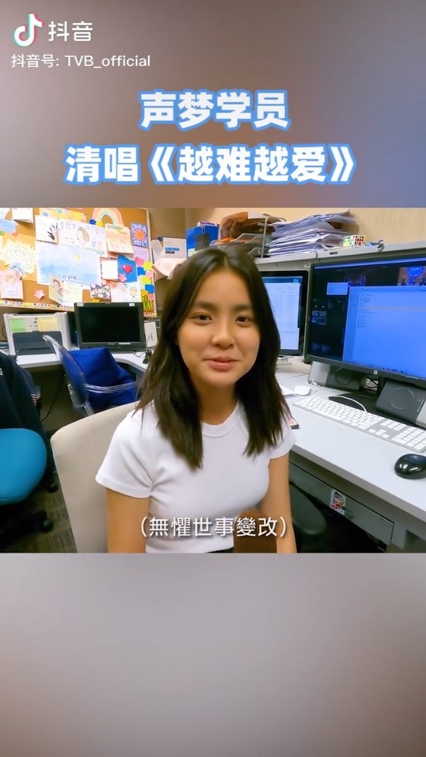 近日,TVB在抖音上載她們翻唱吳若希代表作《越難越愛》的片段,主持人先唱副歌第一句,Chantel和Yumi都能完美接下去。(影片截圖)