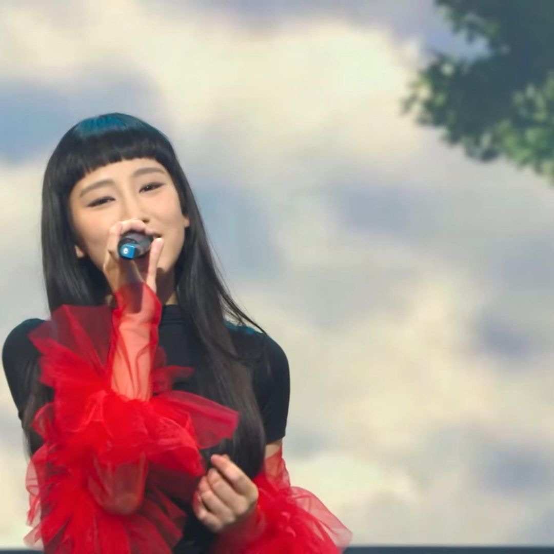 炎明熹以「氧氣瀏海」造型踏上舞台。(YouTube片段)