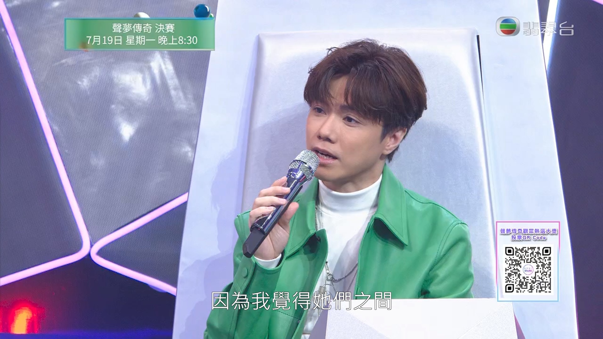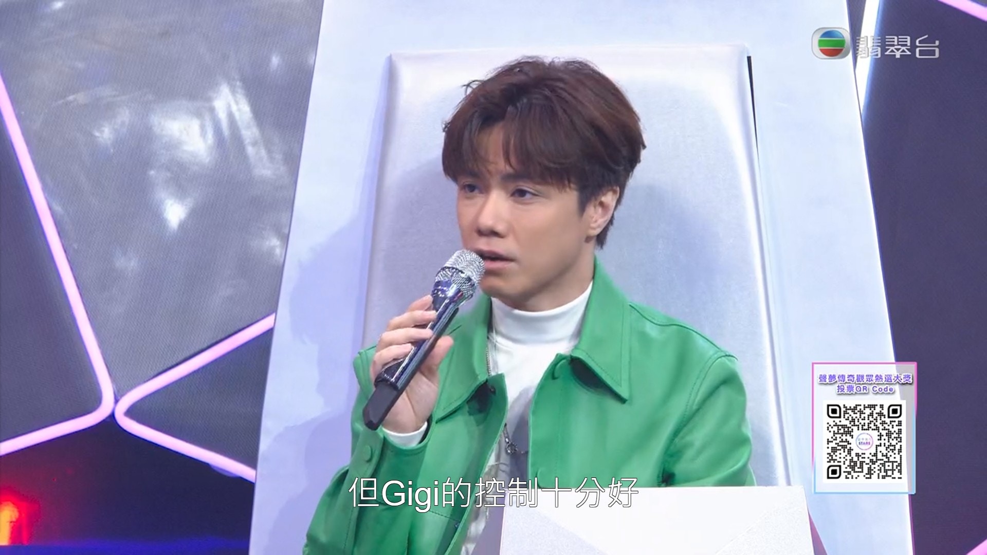 張敬軒形容Gigi唱「技巧純熟」。(《聲夢傳奇》截圖)