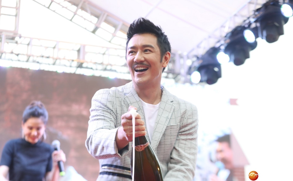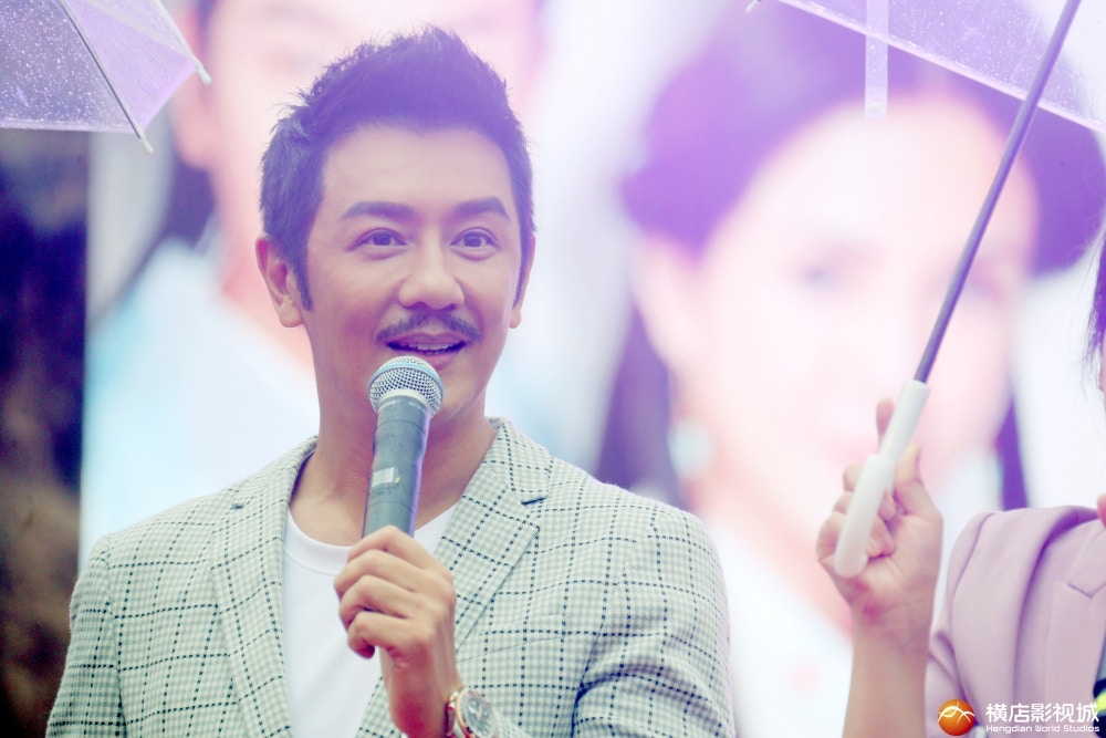 陳浩民更即場跪謝粉絲,冒雨出席見面會。(橫店影視城圖片)