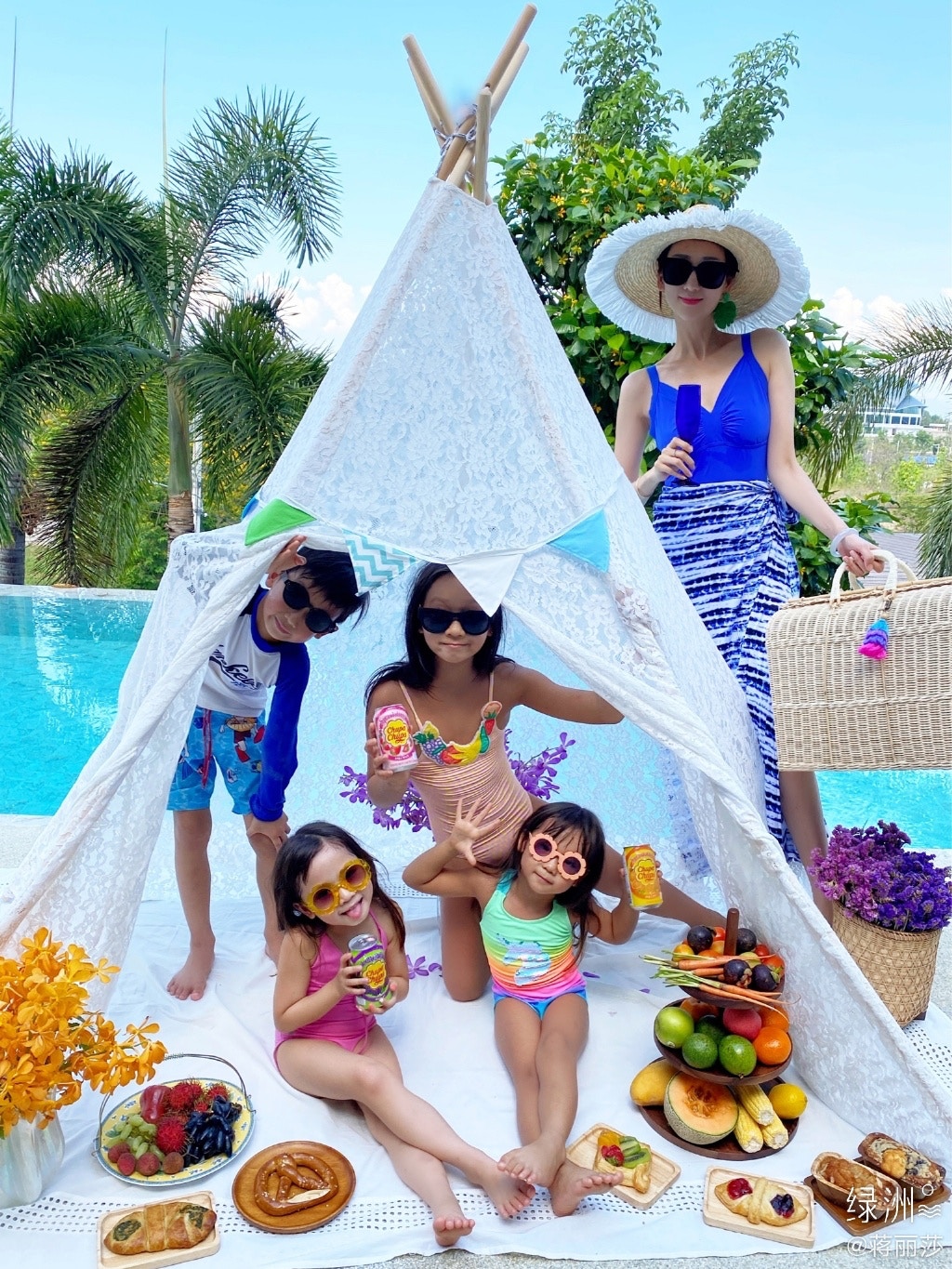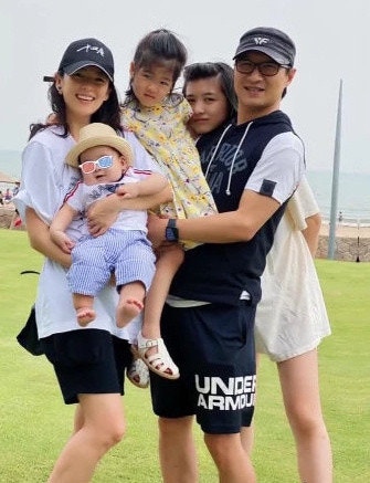 蔣麗莎專心湊兒女。(微博@蔣麗莎加油)