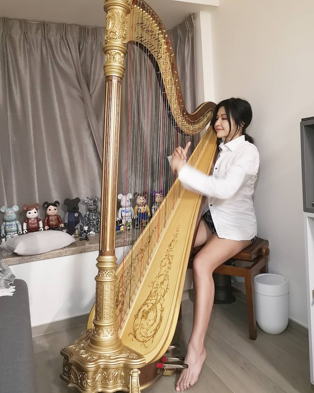 Vicky熱愛彈豎琴。(IG/ @vthechan)