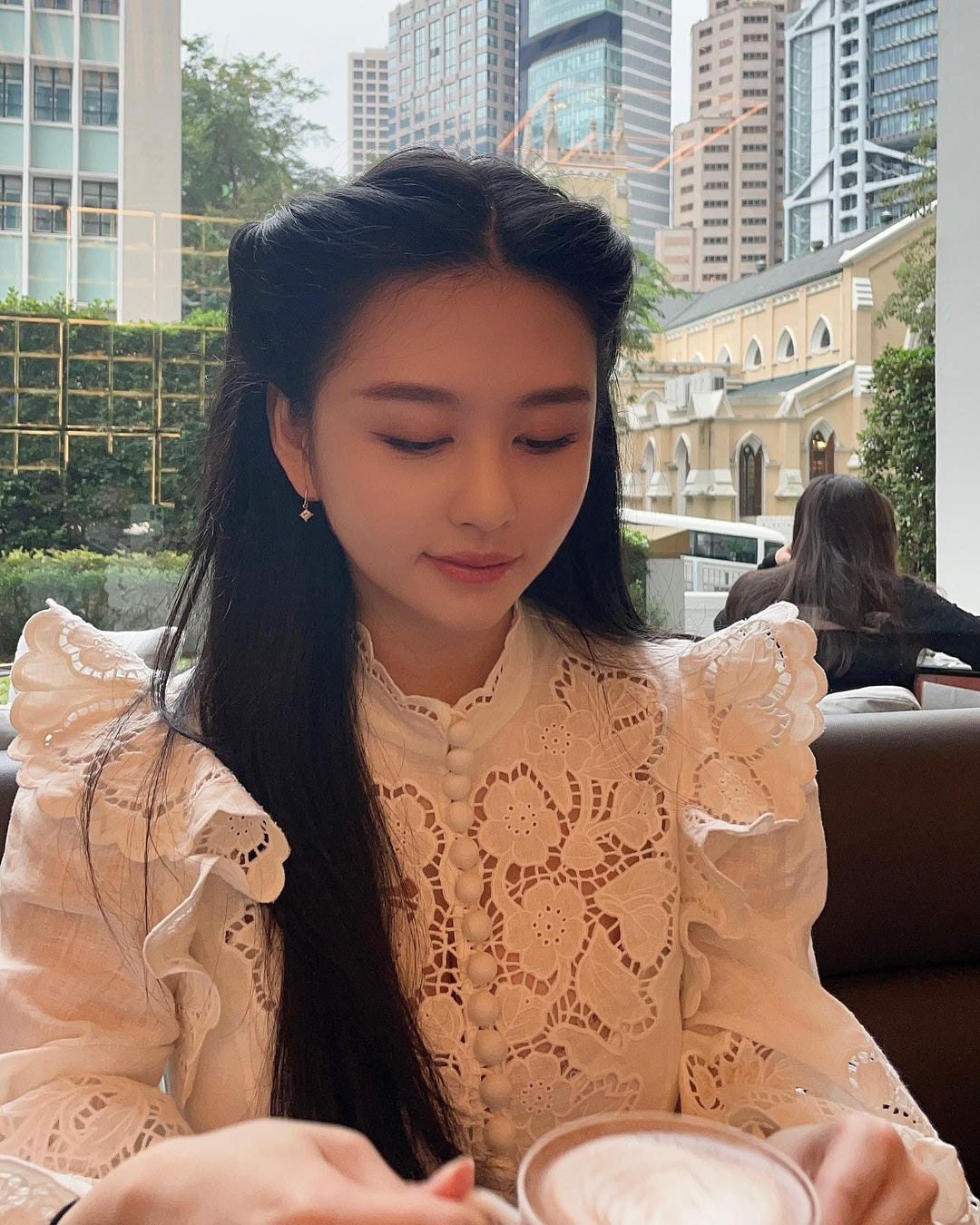 沈月在美利酒店歎咖啡。(Instagram/@yuetyuetxx)