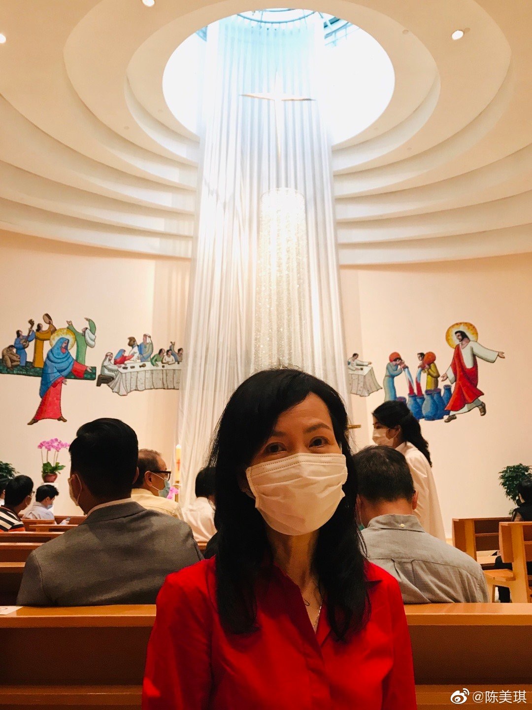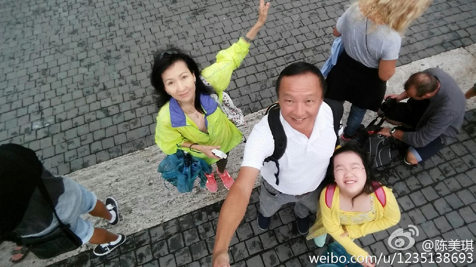 陳美琪跟美籍華人忻尚永結婚,並在內地收養一名孤女。(網上圖片)