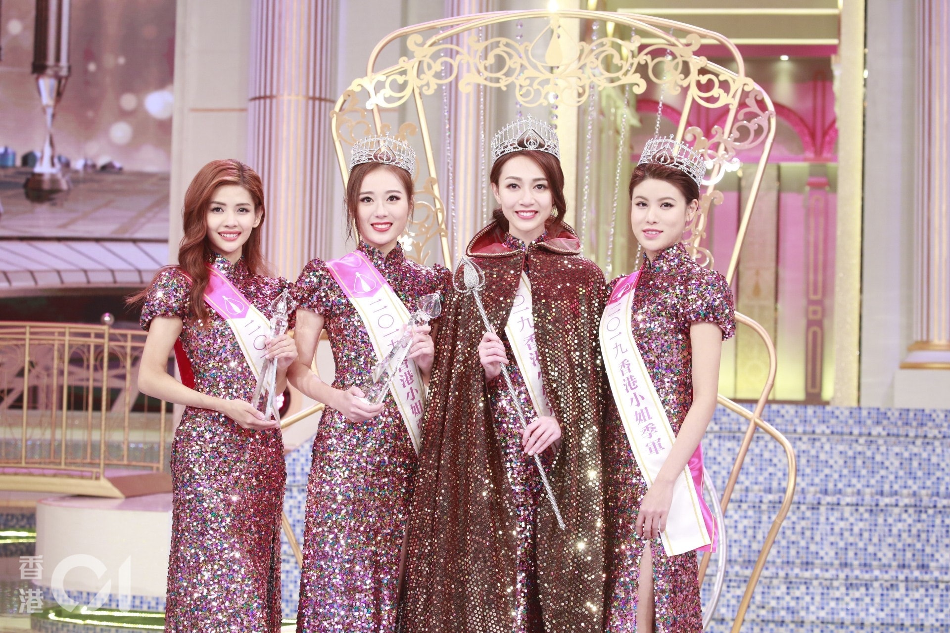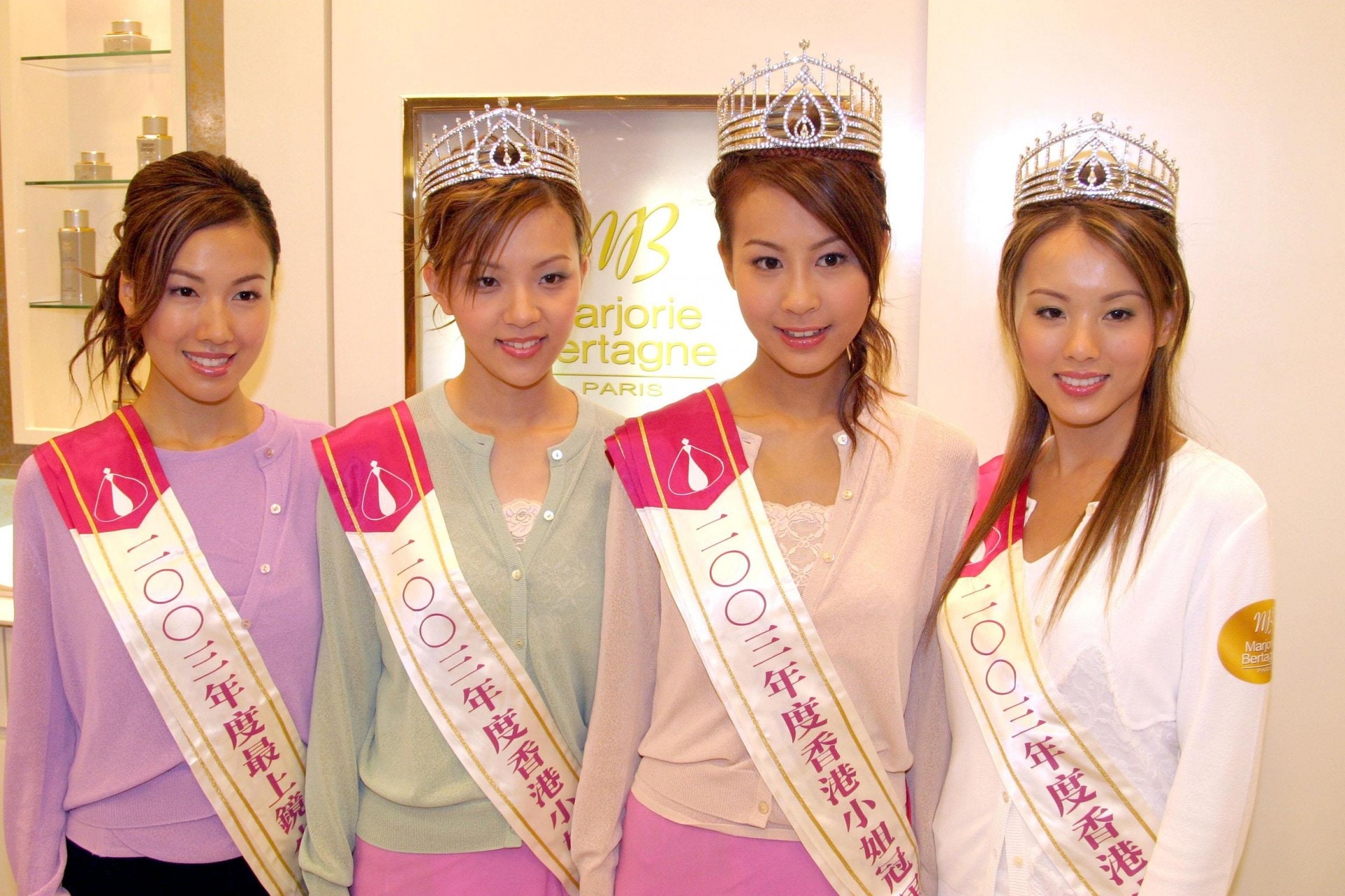 當年冠軍是 曹敏莉(右二),李詩韻(現名李施嬅/左一)是最上鏡小姐,季軍是戚黛黛(左二)。(視覺中國)