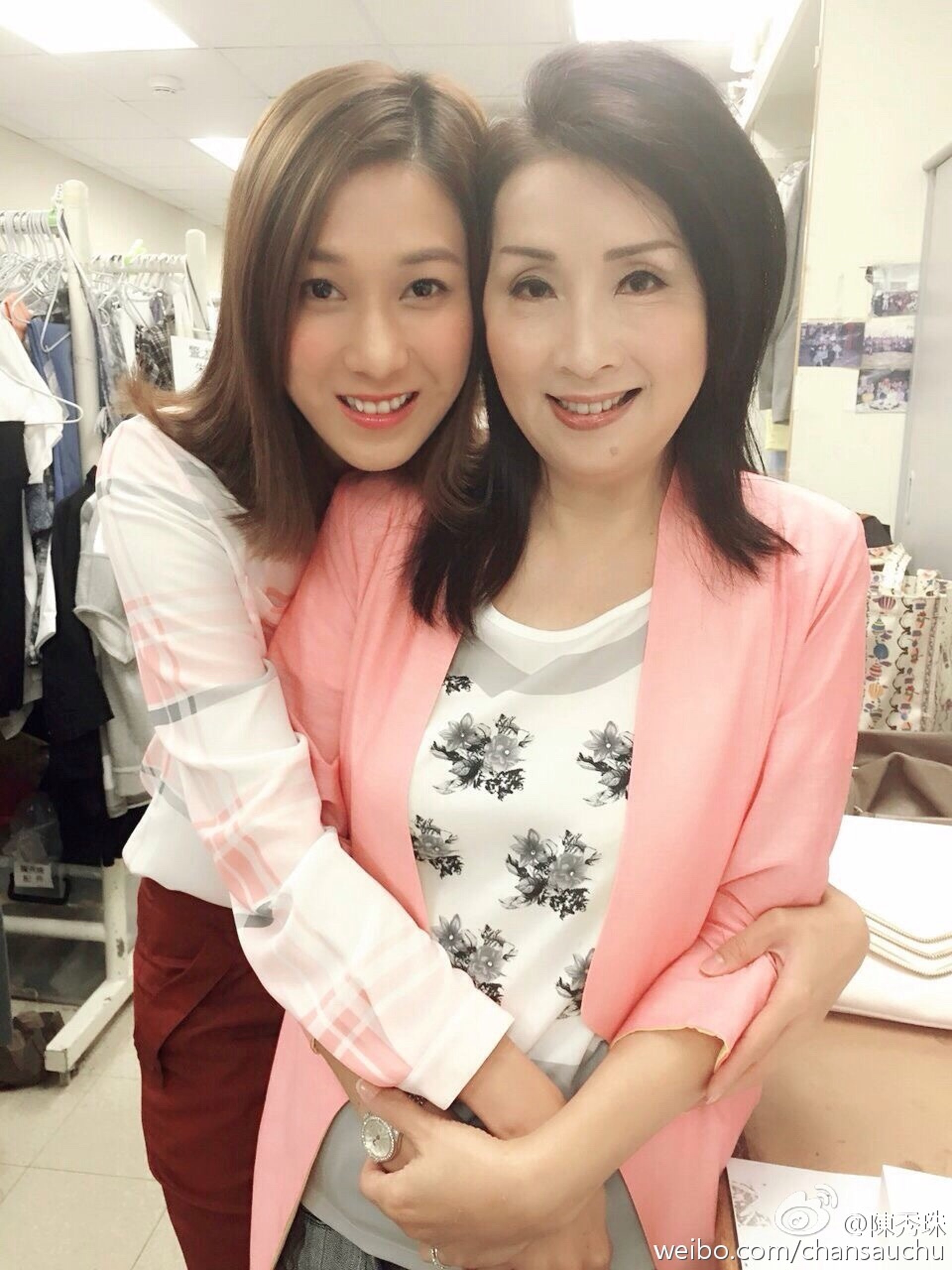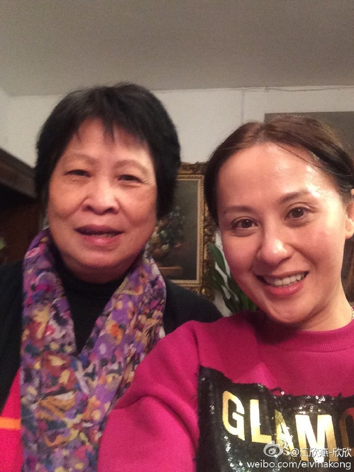 【江欣燕】江欣燕與相識十年的鐘點工人阿麗合照,素顏上陣。(江欣燕@微博)