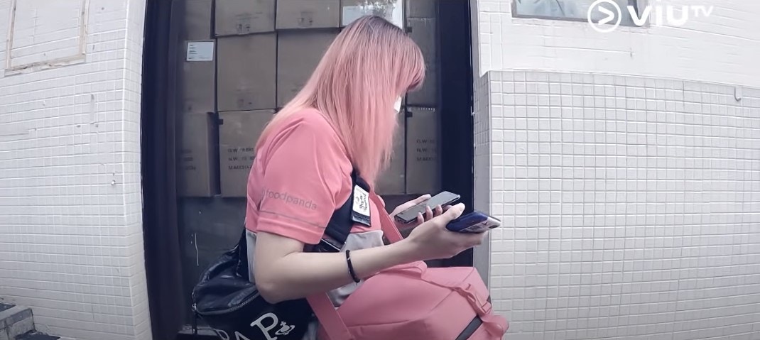 今次杜如風染了一個鮮艷的粉紅色頭髮,與外賣公司形象十分相襯。(《中女唔易做》截圖)